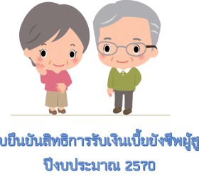 การรับยืนยันสิทธิรับเงินเบี้ยยังชีพผู้สูงอายุ ในปีงบประมาณ 2570 คุณสมบัติผู้มีสิทธิ 1. มีสัญชาติไท..... |