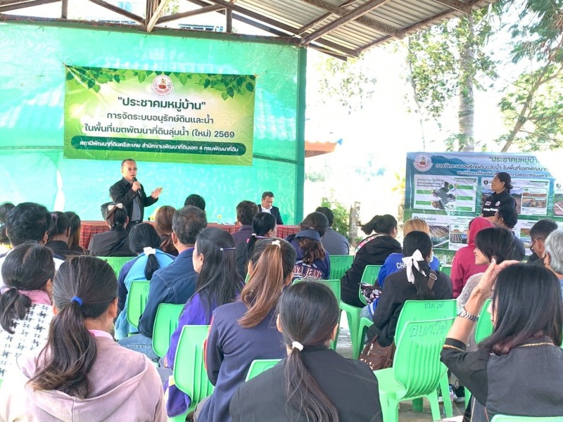 สถานีพัฒนาที่ดินศรีสะเกษ สำนักงานพัฒนาที่ดินเขต 4 กรมพัฒนาที่ดิน จัดประชุมประชาคมหมู่บ้าน เพื่อจัดระบบอนุรักษ์ดินและน้ำ ในเขตพื้นที่พัฒนาที่ดินลุ่มน้ำ(ใหม่) 2569